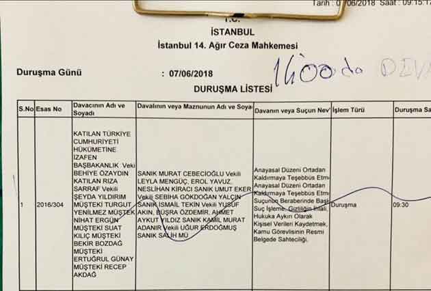 BUGÜN SABAH Kİ DURUŞMAYA GİDİP