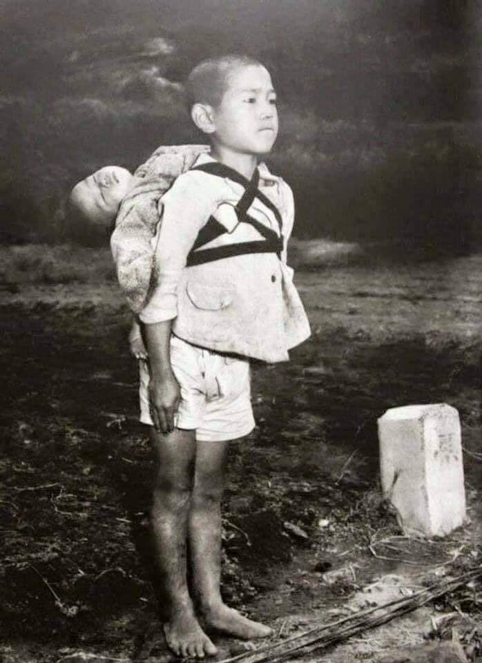 Resimdeki çocuk hakkında konuştuğu şahitlerden biri, çocuğun durumunu şöyle anlatmıştı: "Ateşe doğru gelen 10 yaşlarında bir erkek çocuk gördüm. Sırtında bir bebek taşıyordu. O günlerde Japonya'da çocuklar küçük kardeşlerini sırtlarına alıp oyunlar oynardı. Önce böyle olduğunu zannettim. Fakat bu çocuğun havası tamamen farklıydı.