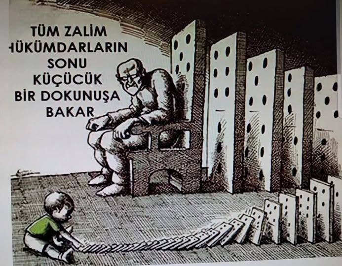 Bekleyin göreceksiniz, mazlumun gücünü ve Allah'ın şaşmaz adâletini. Bu yüzden, dalkavuğu olduğunuz diktatörünüze güvenerek ne şımarın, ne itleşin, ne bulunduğunuz devlet dâirelerinde mesâi arkadaşlarınıza dayılaşın, ne de masum canını yakın.