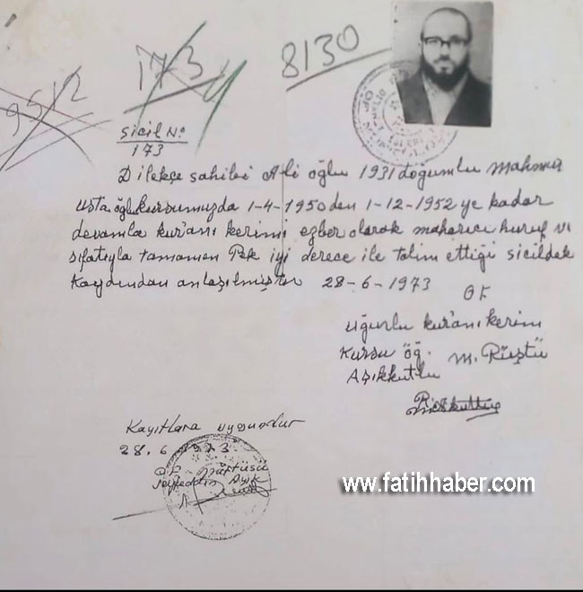 Oflu din alimi Hacı Mahmut Ustaosmanoğlu Efendi'nin vefat haberini duydum.