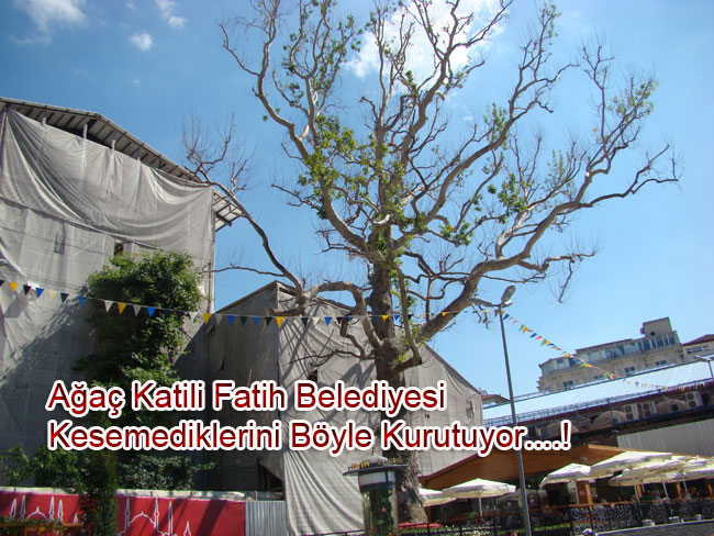 Tarihi Fatihin ana caddlerinde, tarihi eserlerin etrafında, büyük meydanlarda ne kadar asırlık ağaç varsa ya kesilip yok ediliyor, Yada kelaynak gibi budanarak ağacın kurumasının yolu açılıyor.