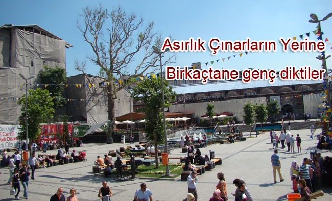 Tarihi Yenicami önü "Çınaraltı" parkında artık çınar yok, Eski fotoğraflardan tespit edebildiğimiz kadarıyla asırlık on adet çınar bahçeden bir gecede kesilerek yok edildi. Bu olay Fevzi paşa caddesindeki ellili yıllarda dikilen "Semiha Ayverdi vakfı " çınarlarına kesim izni vermeyen Anıtlar kurulu, adı ile müsemma Çınaraltı bahçesindeki çınarların kesilmesinden haberi var mı?