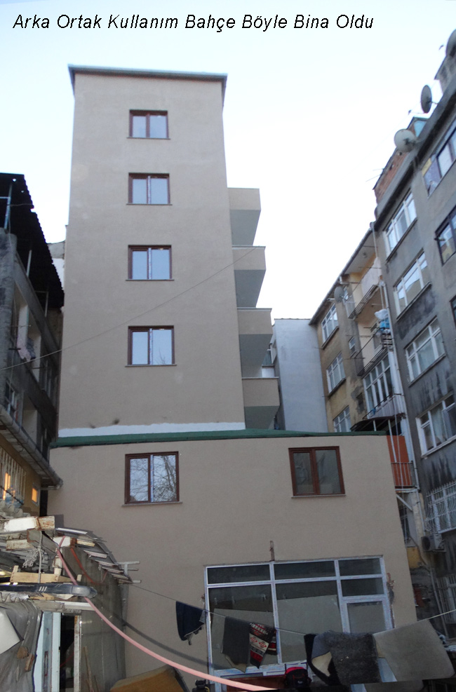 Fatih belediyesi bu binanın kaçak bölümlerini yıkması gerekirken Binanın kaçak katlarına rağmen Arka cepheden işgal edilen parsellerin hak sahiplerine hisse verilmesi gibi Tarihinde hiç uygulanmamış bir yöntemle Hukuk cinayeti denilebilecek bir uygulamayı maalesef Fatih belediyesi meclisinden geçirdi.
