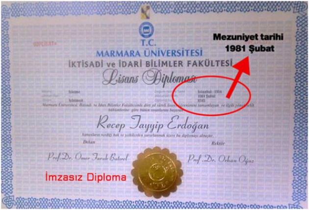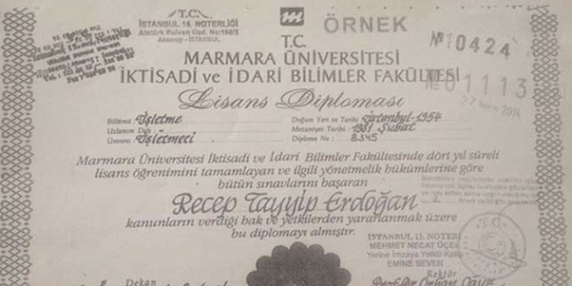 Partili hukukçularımız yaptıkları başvuruda ayrıca, Erdoğan’ın geçmişte kullandığı diploma fotokopileri ve sözde noter onaylı fotokopiler üzerinde de ya imzaların ya da mühürlerin bulunmadığı, bulunanların ise açıkça ve çıplak gözle görülebilecek şekilde üzerinde tahrifat yapıldığını belirtmişlerdi.